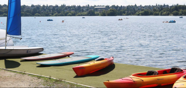 For families coming from North Seattle, Green Lake Park is a prime location for kid-friendly paddling. You won’t need to worry about boat wake in this popular lake as Green Lake does not permit motorized watercraft, so go on and paddle right out to the middle. Throughout the summer the lake is home to blooming lily pads. Be careful as you paddle along, sometimes your paddles get stuck in the tangle of roots, making it difficult to get past the flowers. Green Lake also offers two lifeguarded swimming areas and a 2.8-mile paved trail for add-on activities like walking, biking, running, scootering or just hanging out after a day on the water. As of June 2024, the west swimming area is the only one with a lifeguard. Check out other lifeguarded beaches that are open for this summer here.