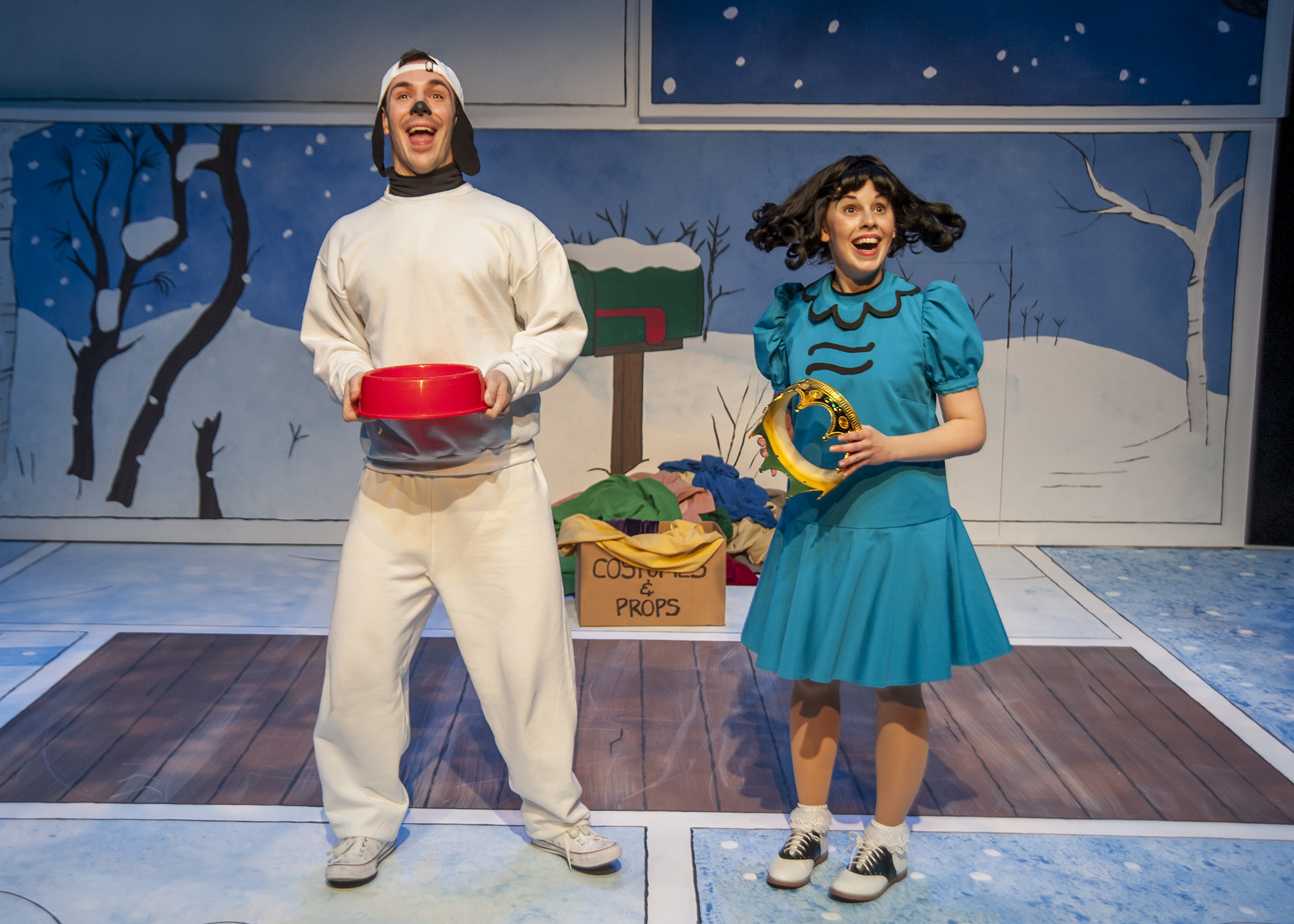The cast of eight is so perfectly matched, it seems the characters have jumped from the pages of the comic strip. Ben Wippel’s Charlie Brown demonstrates a balance of struggle and pluck. Snoopy played by Andrew Scott Bullard is often a scene-stealer. Without resorting to crawling, Bullard’s movements emulate Snoopy with an authenticity and joie de vivre. He has one dance sequence that is jaw-droppingly amazing. Afterwards, my thirteen-year old daughter commented how her thighs hurt just watching him. It was indeed quite spectacular. However, the self-proclaimed star of the show is Lucy, played by Sophia Franzella. Her bossy nature, or rather leadership skills, are on full display. Franzella’s combination of sass and smarts provided all the things we love about Lucy. All the actors portray the characters in their original form with their emotions displayed overtly and clearly. It is both comical and helpful for little ones to connect with the characters and how they feel.