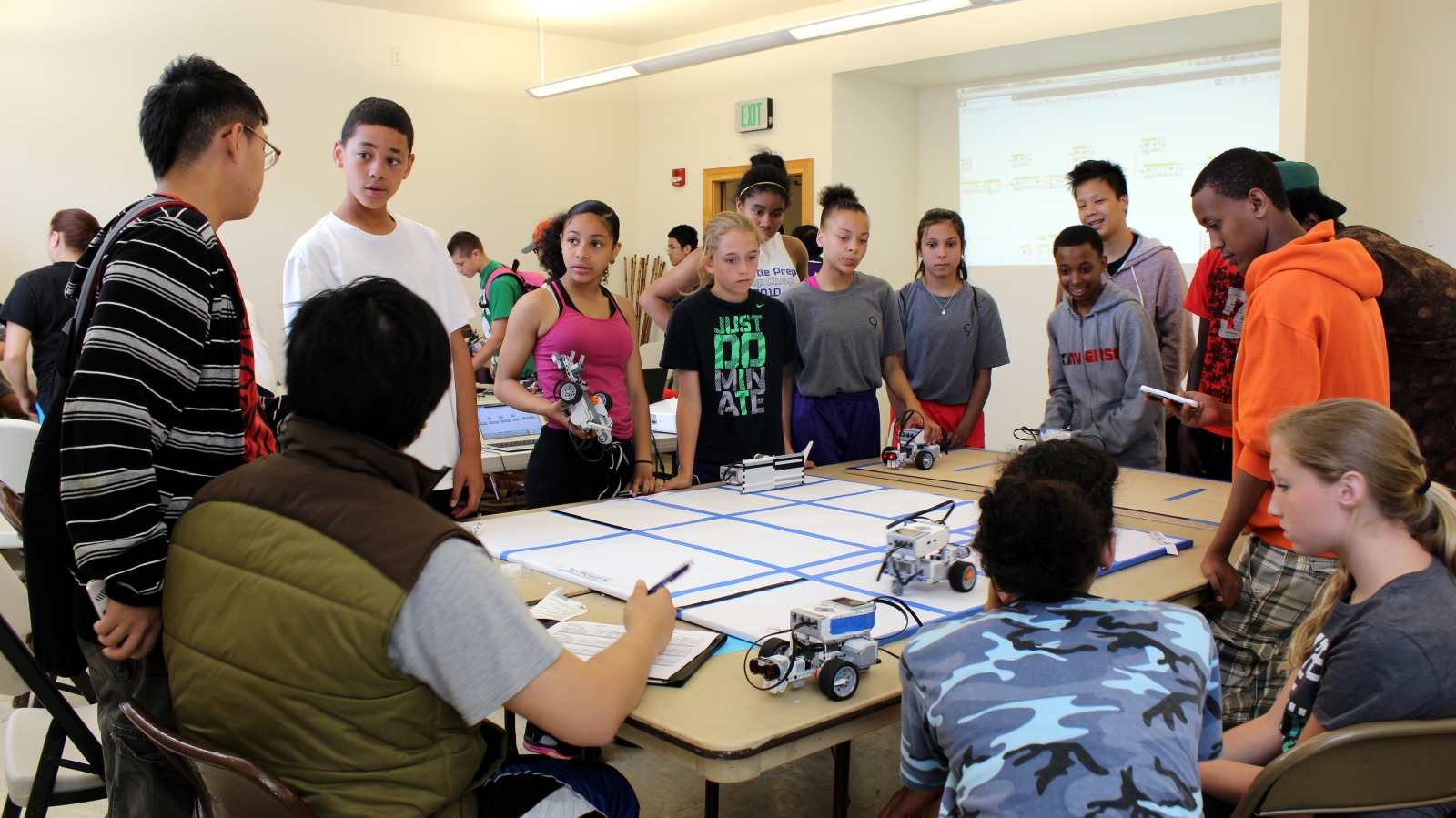 Instructors get kids excited about technology by building classes around games and activities they already like. The popular video game Minecraft, for example, is being used as a teaching tool. Site coordinator and instructor Haya Munoz describes the game as “a virtual sandbox” where students can build interactive 3-D structures and landscapes to form a community. The class works together to choose what type of community they want to create, including features such as a farm, city and neighborhood. Then they divide into teams to build each feature. At the end of the course, parents are invited to watch their kids present the creations.