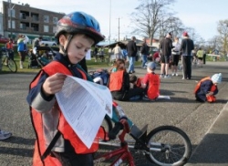 When pre-registering, each team chooses a 90-minute or three-hour scramble, and whether they'll be on foot or bike. We opted to (mostly) go on foot: My husband and I ran with my 3-year-old in the jogging stroller while my son kept up on his bike. This worked well for us. It would have been difficult to reach some of the checkpoints on bike and would have been a ton of gear to haul.