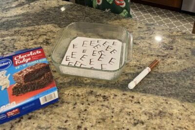 For an after-school snack, bake up a batch of Brown-E’s (brownies) — simply get a piece of paper and use a brown marker to write a bunch of “E’s”, then place the paper in a baking pan. If you want to get back in your kids’ good graces after a day full of pranks, serve them some real brownies after they discover the prank pan.