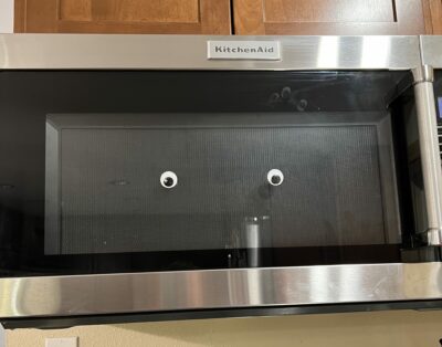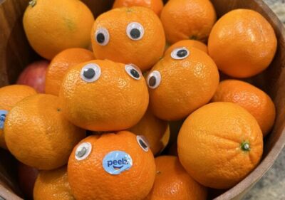 Use googly eyes to spruce up items throughout your home. Everything looks extra silly with googly eyes – some of my favorite places to stick googly eyes are on fruit, milk jugs, appliances, shoes, and toys.
