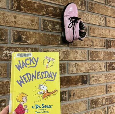Take a cue from Dr. Seuss’s classic book “Wacky Wednesday” and put shoes in unusual places. Your kids will be delighted to find their shoes on the “feet” of tables and chairs, hanging from light fixtures, or even “climbing” up the walls.