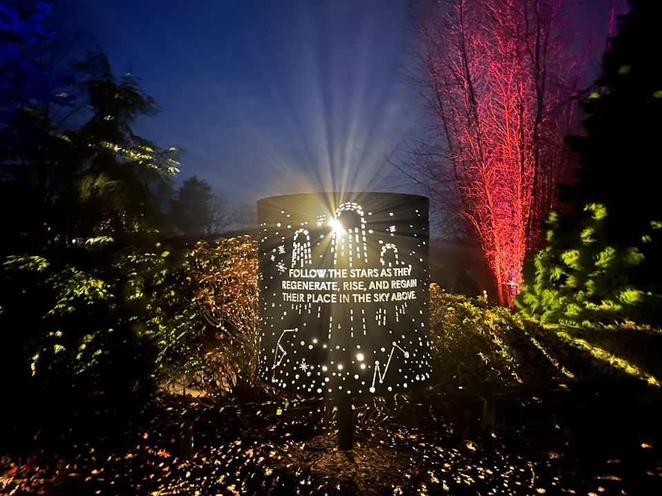 There are 9 thematic areas you will walk through on this 1-mile adventure. Seeing the beautiful lights and technology used to put this immersive experience together was impressive. From a brightly lit archway and starlight lanterns to shooting stars and stardust rays created from special lighting effects, there was much to take in while we were there.