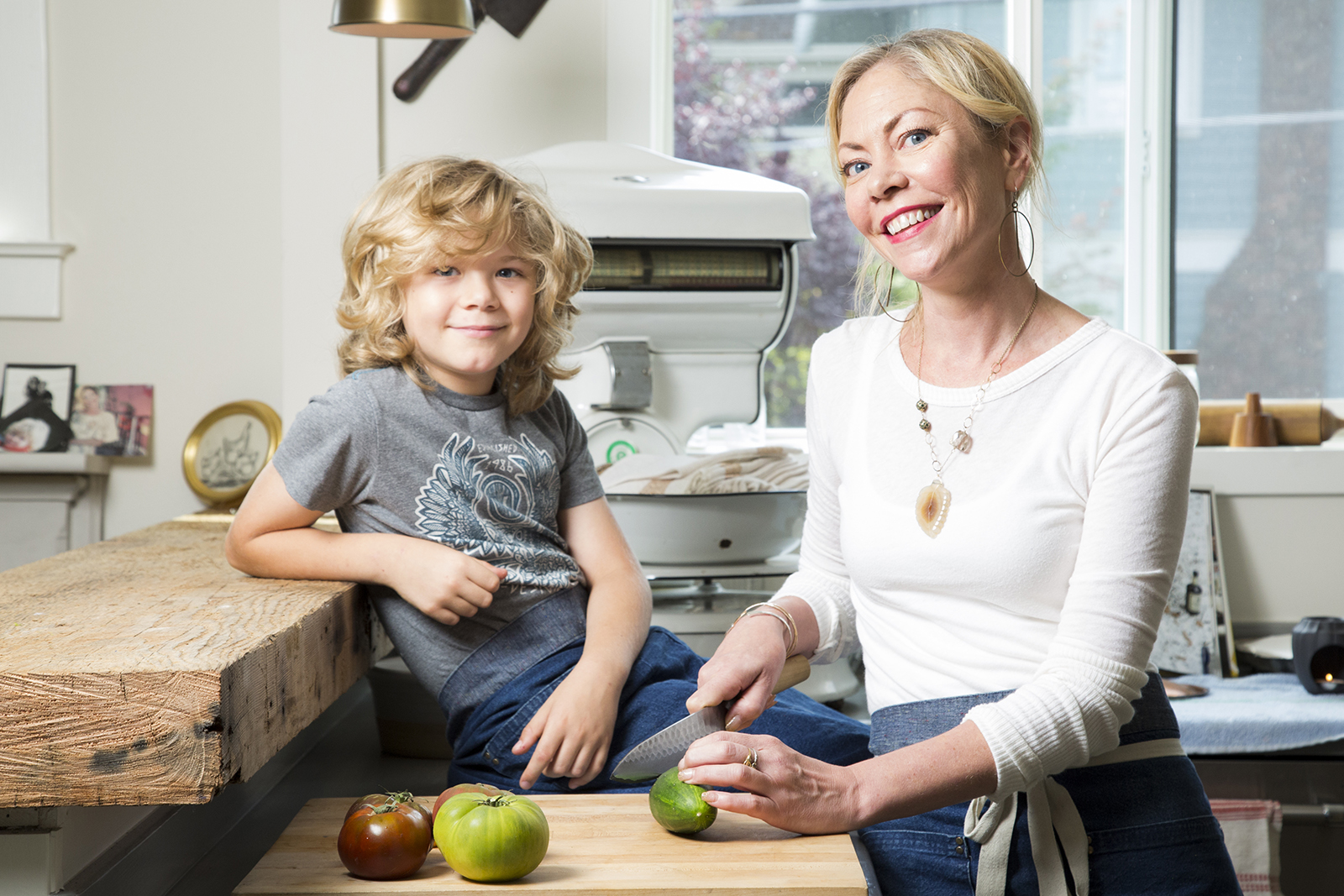 She keeps a garden with her son and teaches him how to prepare food. She’s taught him to use a knife and “he feels comfortable peeling a carrot,” she says. “I’m not completely negligent. I’m just kind of right there,” she laughs.
