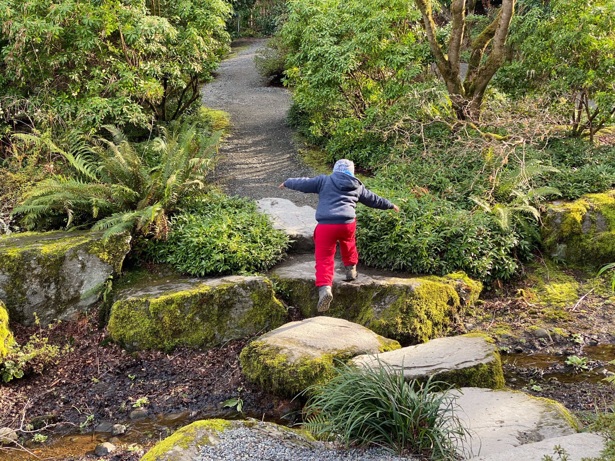 If you’re looking for your garden fix — and a little hope for better weather — you’ll want to take your family to the Bellevue Botanical Garden. The park teems with beautiful landscapes and trees and has sculpture gardens and a suspension bridge. It does not disappoint. With so many things to see, it’s easy to keep little legs moving along paved pathways to catch the next attraction.