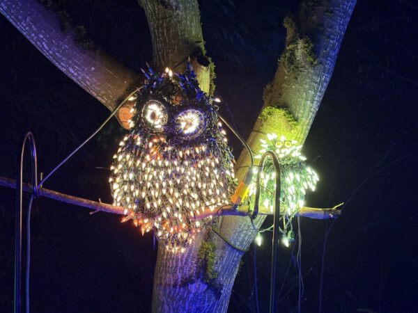 Despite having visited Garden d’Lights many times over the years, there is always something new to discover. The 2025 Garden d’Lights has a varied walking path with a new order of light displays, and each display has been upgraded to incandescent lights for brighter, more vibrant colors. Keep your eye out for new additions to the displays, including the cutest baby owl perched next to its mother.