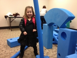 "Mom, mom!" announced my three-foot-tall daughter measuring herself up to one of the giant blue segments. "Look! I'm taller!" Her exclamation received a round of laughs from the other moms in the room. Suddenly, the other children were standing the pieces up and discovering that the different pieces were different heights. And some wouldn't stand up no matter how many different directions you tried to place them.
