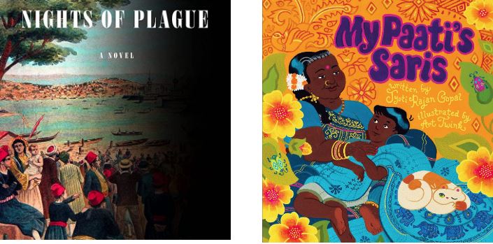 A Tamil boy celebrates his beloved grandmother’s beautiful saris in this colorful picture book that engages the senses. Each sari has a different pattern, weave and texture, and they’re rich with the comforting scents of jasmine and rose. The pair’s relationship is tender and loving; the boy and his grandmother play together, walk to the market together, cook together and dance together. And at the end of this sweet story, the child gets to wear a stunning tiger-themed sari to a party themselves!