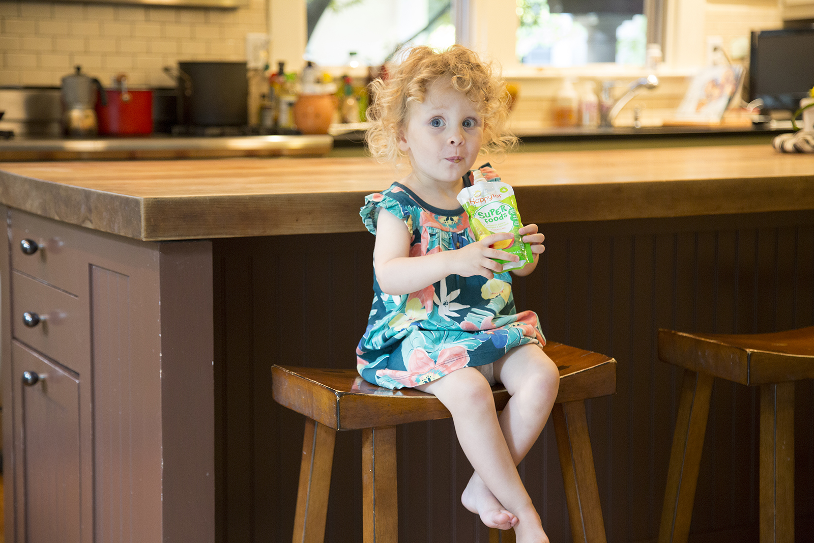 So while pouches work fine for on-the-go, Grow and Morrow encourage feeding “real” food at home. It’s not necessary for babies and toddlers to have pureed foods for a long time, and a major part of their development is learning to handle different textures. “The issues with the processed food evolution is kids lose their connection with food,” Morrow said. “We need to make sure kids see the food, have textures that advance them to mentally accept food in its shapes and flavors and colors. If they’re just squeezing it out of a tube, they don’t know what they’re eating.”