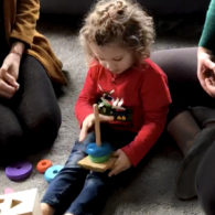 Parents learn how to practice mindfulness while their children are nearby.
