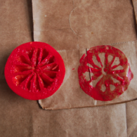 Make this veggie stamped tote bag with last week's old veggies and then take it