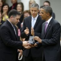 AP Photo/Pablo Martinez Monsivais President Obama presents the 2013 National Teacher award to Jeff Charbonneau,