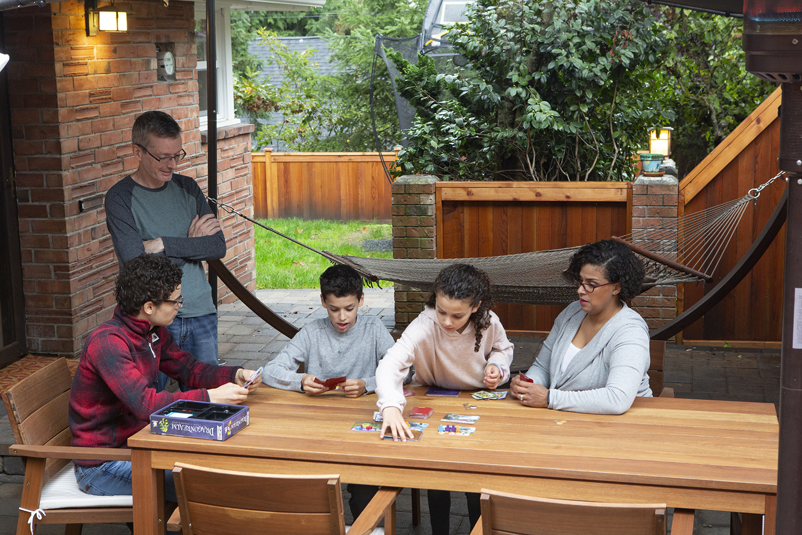 Erin Vey and her family live in Bothell and are very thankful for a covering they added several months ago in their backyard. It extends from the side of their house and is equipped with skylights, patio heaters, lanterns and even a chandelier.