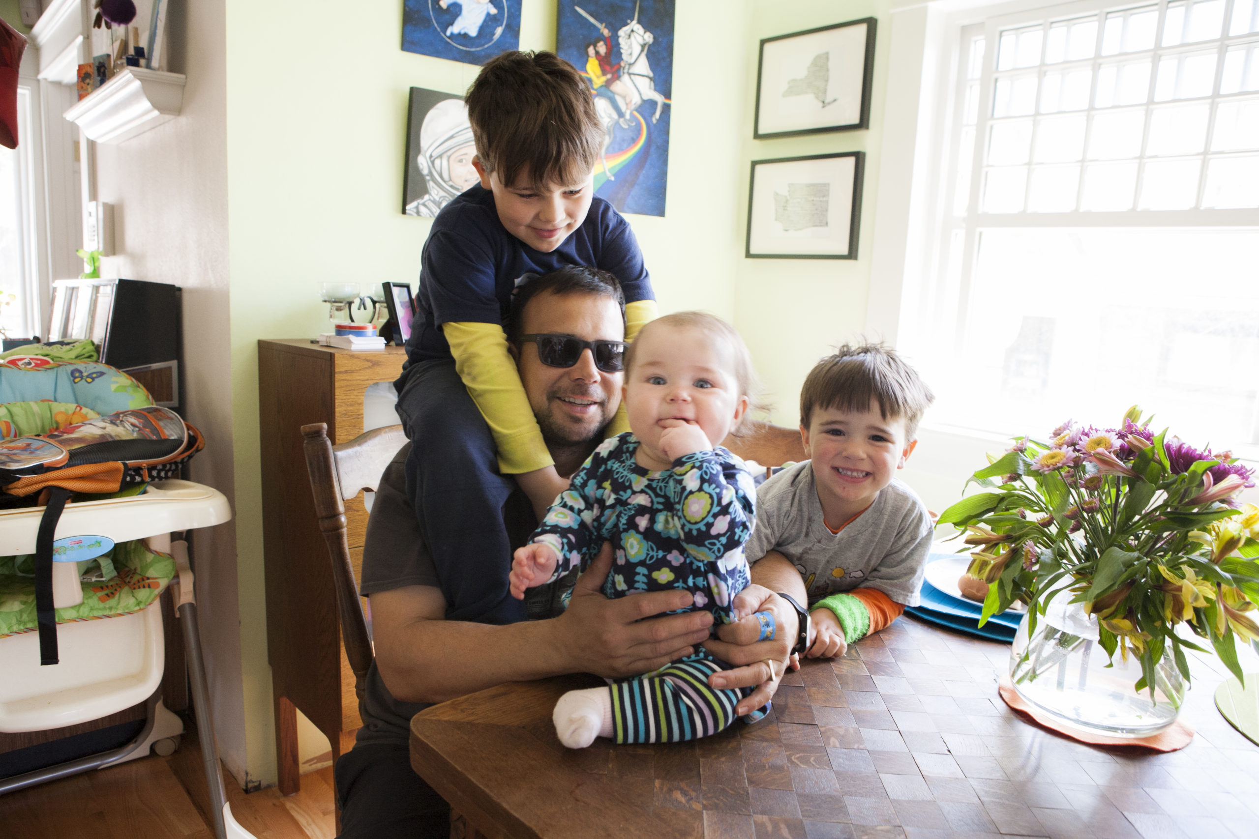 For Chavez and his wife Kelly, the decision to swap traditional parenting roles once their first child was born was easy. “My wife made more money than me,” Chavez explains, adding that his own job had morphed into something that no longer felt ideal. The arrangement works well. Kelly has a demanding job, including travel. Chavez shops, cooks and cares for the kids. Since Ramona still nurses, Kelly pumps breast milk to have at home.