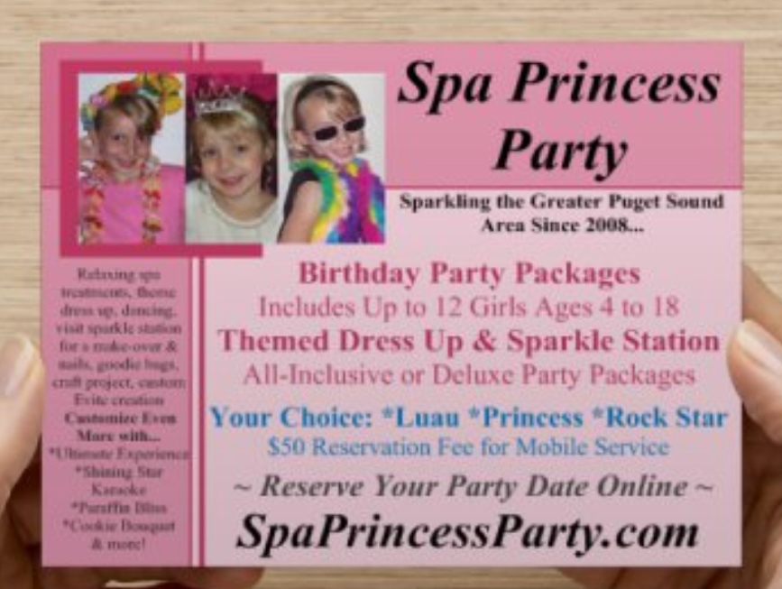 Spa Party Packages for Birthdays include up to 12 girls ages 4 to 18, themed dress up, sparkle station makeup and nails! Choose your theme: Luau * Princess * Rock Star! Plus New SPA GALS Theme Option ~ Ask me! All-Inclusive or Deluxe Packages plus $50 reservation fee. Reserve your party date online today!