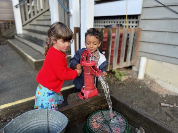 Our 20,000 square foot outdoor space offers a myriad of opportunities for children to express creativity and explore the world around them, whether they are building forts, picking and sharing fruit with friends, feeding our chickens, or playing organized games like gaga ball. Children learn by doing, so we use play and exploration as catalysts for learning. We’ve dubbed our playground “The Second Classroom” because so much student development and learning happens there. Playful work and purposeful play are at the heart of our mission and our community.