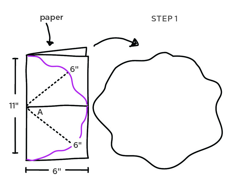 - Draft the mane. Start by folding a 12-inch by 11-inch piece of paper in half vertically. Draw a perpendicular line from the vertical center point (A). At about a 45-degree angle above and below the perpendicular line, plot 6-inch marks from point A. Using these points as a guide, draw curvy lines for the mane outline. Don’t worry too much about symmetry or precision; you can always adjust the mane shape later. Draw an almost straight edge of about 3 inches near the bottom of the mane, where you can leave an opening that can later be closed easily with a slip stitch. Cut out the template.