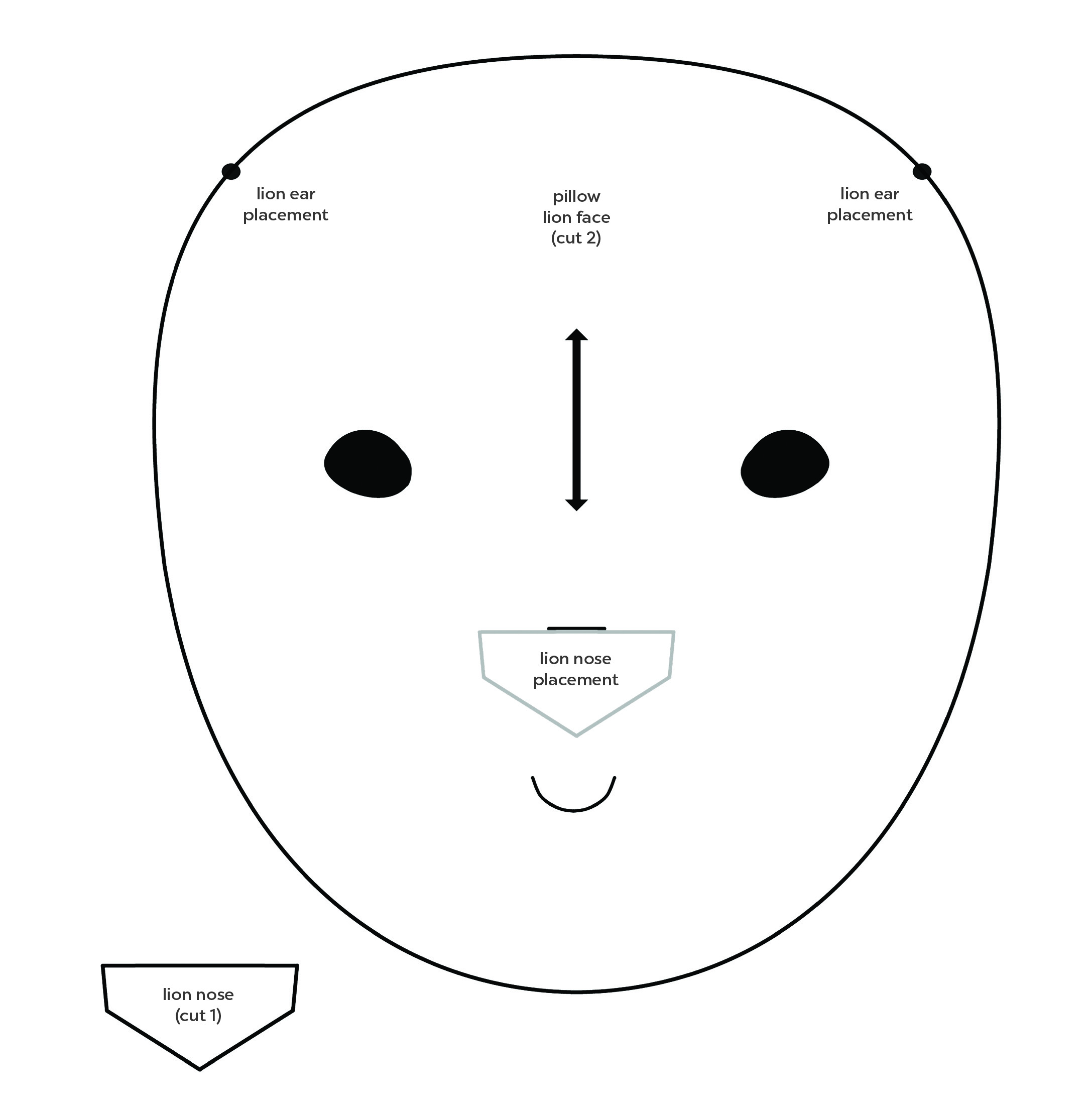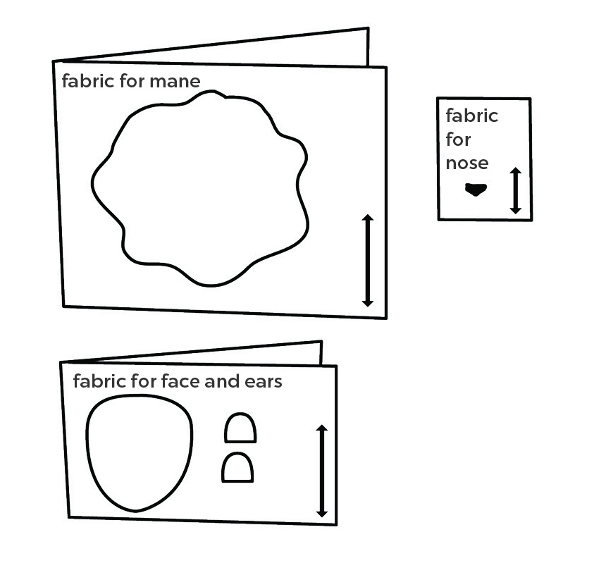 - Trace the templates for the mane, face, ears, and nose onto the appropriate fabric and cut out the pieces.