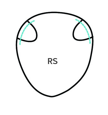 - Make the ears. Sew each set of earpieces with right sides together, using a ¼-inch seam allowance along the curved edge. Do not sew the bottom edge. Trim the curved edges to about ⅛ inch. Turn the right side out and press. Topstitch ¼ inch from the curved edge, if desired. Align the raw edges and baste the ears to the right side of one of the face pieces, as marked. Ensure the earpieces are centered at the markings.