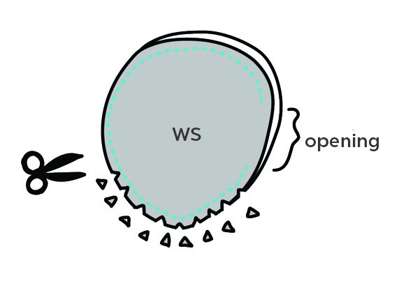 - Make the face. Sew the front and back face pieces with right sides together, using a ¼-inch seam allowance, and leave an opening of approximately 2 inches along one of the straighter edges. Clip along the curved edge, ensuring that you do not cut into the seam. Turn the right side out and press.