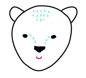 - Make the nose, eyes, and mouth. Pin and satin/zigzag-stitch the nose onto the right side of the face piece with the basted ears (see the template for placement of the facial elements). Because of the small size, feel free to hand-stitch the nose if it feels easier. Use a marking tool to indicate the general positions of the eyes and mouth on the face piece. Embroider the eyes using a satin stitch (black floss) and the mouth using a backstitch (pink floss). You could also use buttons for eyes instead. With cream floss, add other decorative embroidery, such as more nose definition and detailing on the forehead and whiskers, if desired.
