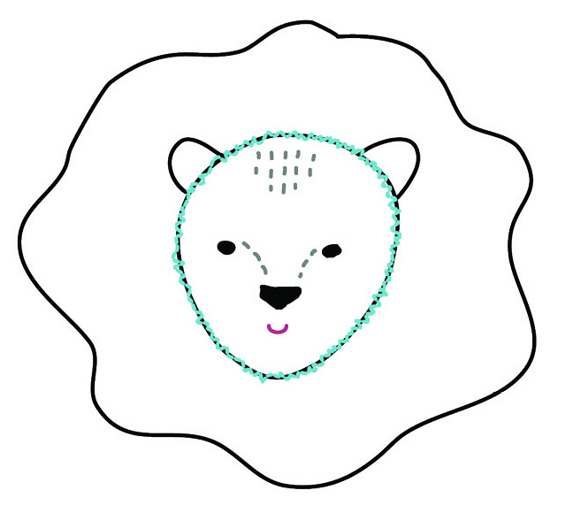 - Appliqué the face to the right side of one of the mane pieces by hand-stitching or using a machine satin/zigzag stitch. Press.