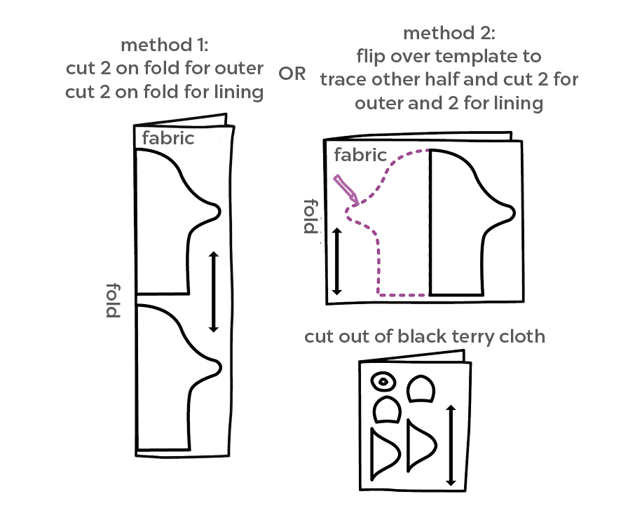 *Sometimes small pieces of terry cloth may be difficult to hand-sew, so you may want to use black wool felt for the eye pieces instead.