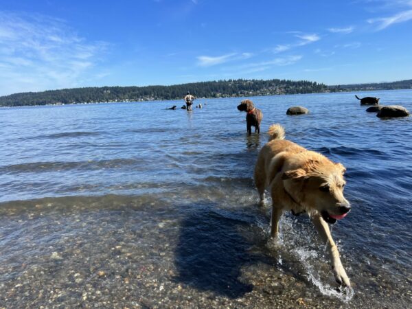 There are 40 acres of generally wide-open space for the dogs to run and play. I love how remote it feels without going too far outside of Seattle. Marymoor has more shade than Magnuson and lots more greenery. I like to make a trip to Marymoor when we have extra time for the drive and to make it through the park, which could last nearly an hour.
