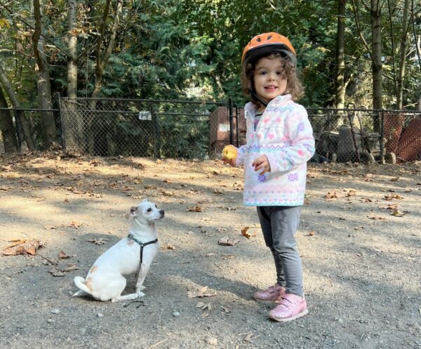My two human daughters have been joining us since they were in utero. As babies, they’d rest happily in a carrier, an outing of fresh air and select dog licks that both entertained and soothed them. Though our toddlers had a fair share of hard knocks, they learned how to interact with other dogs early. As impressionable elementary-age children, they are now fully aware of just how much fun there is to be had with man’s best friend, so long as they follow the unspoken rules of dog parking 101.