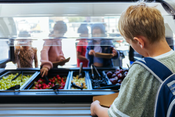 Caption: Kids serve themselves fruit in the San Luis Coastal Unified School District lunch line in San Luis Obispo, CA. (Image courtesy Eat Real)