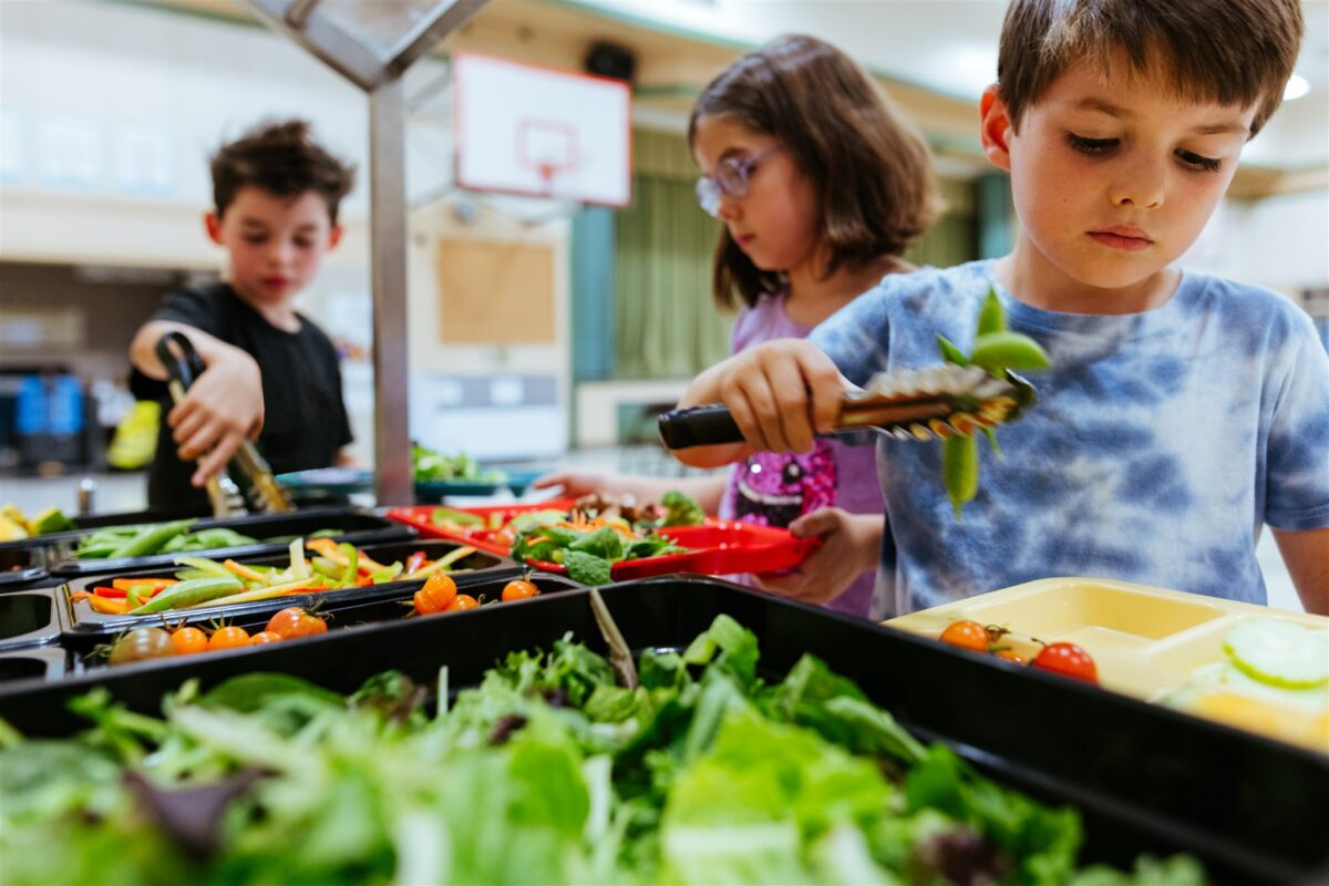 Kids dig into their meals at Natomas Unified School District in Sacramento, CA. (Image courtesy Eat Real)