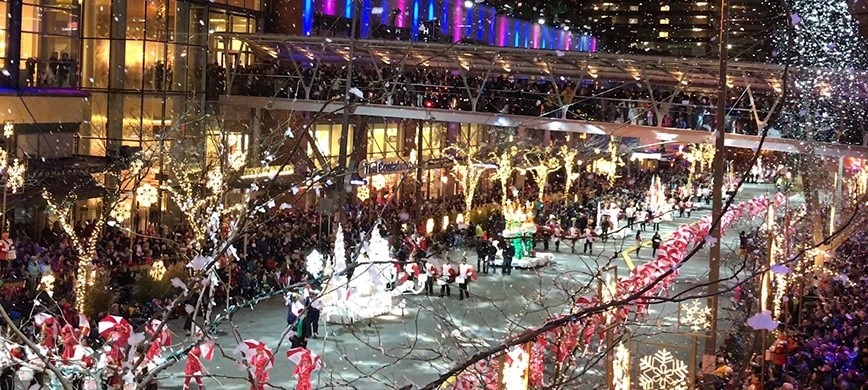 There are nightly snow flurries on a parade of live toy soldiers and other characters in Bellevue. Come watch a brilliant light show and listen to the festive music. The event runs daily through Dec. 24. Free parking available in nearby garages.
