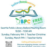 Nurture a love of reading with Ballard Bookworms! Ballard Preschool Co-op (BPC) is introducing their
