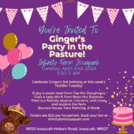 Celebrate Gingerās 3rd birthday at the Toddler Tuesday session on April 2 at Infinity Farm