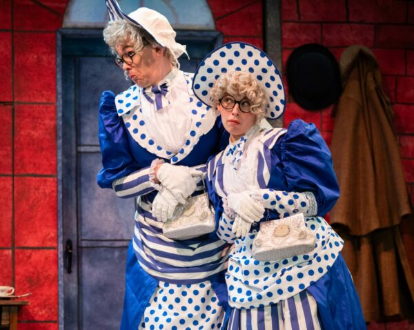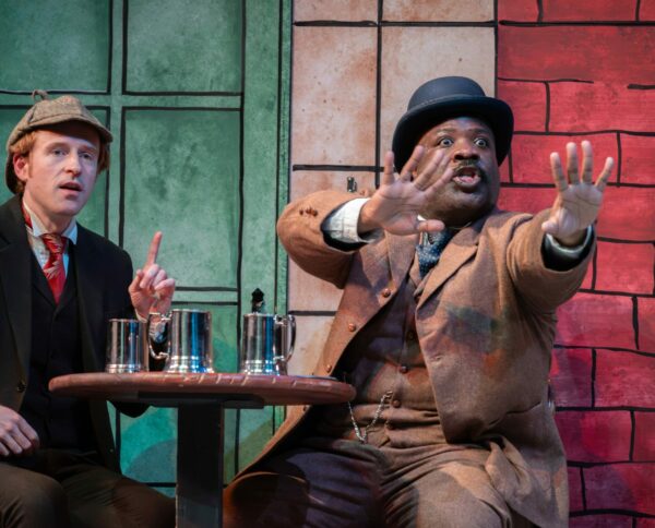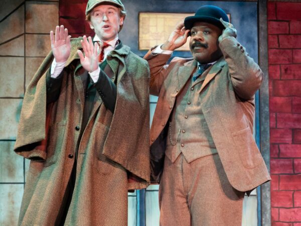 Taproot’s intimate Jewell Mainstage Theater is a perfect setting for this production, allowing the audience to feel like they have stepped inside the show. The tale, more comedy than drama, finds Dr. Watson regularly recounting the events in real-time directly to the audience, much to the annoyance of Sherlock, the amusement of the audience, and the confusion of the other characters. And while upwards of a dozen characters are in the play, just two actors portray the bulk of them, garnering many laughs for the costume and accent changes involved.