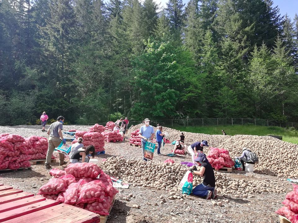 The recent break in the food distribution chain (caused by the pandemic) left an excess of food. Through redistribution efforts, Pasztor and her team supplied over 85 food banks and food programs with bags of potatoes, apples, onions, and smaller amounts of produce.