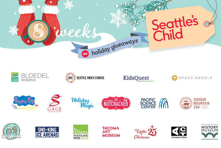 Seattle’s Child and our partners are offering you a chance to win these amazing holiday prizes! Family memberships, gift packs, tickets to the theater and more. Click on the giveaway form to enter each week for a chance to win.