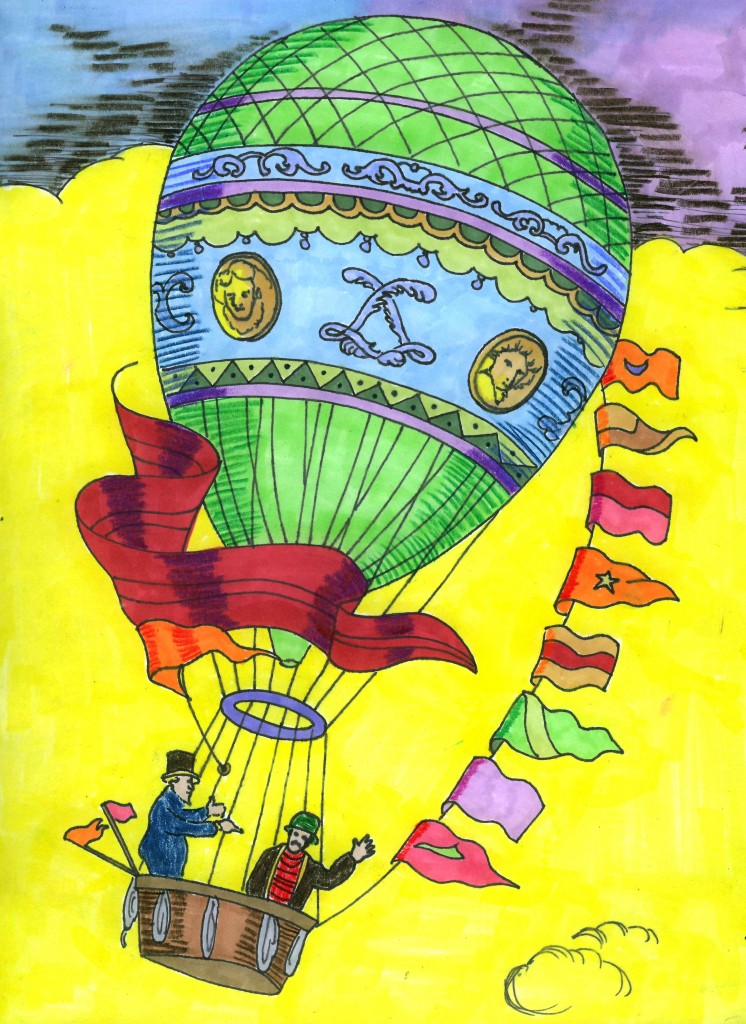 In art, sometimes we get new ideas from looking at something old. At our art school here in Seattle, we recently taught this lesson, inspired by historical illustrations of the first passenger-carrying hot air balloons. Students of all ages, from 4-year-olds to adults, had such a great time I decided to share the project here as well.