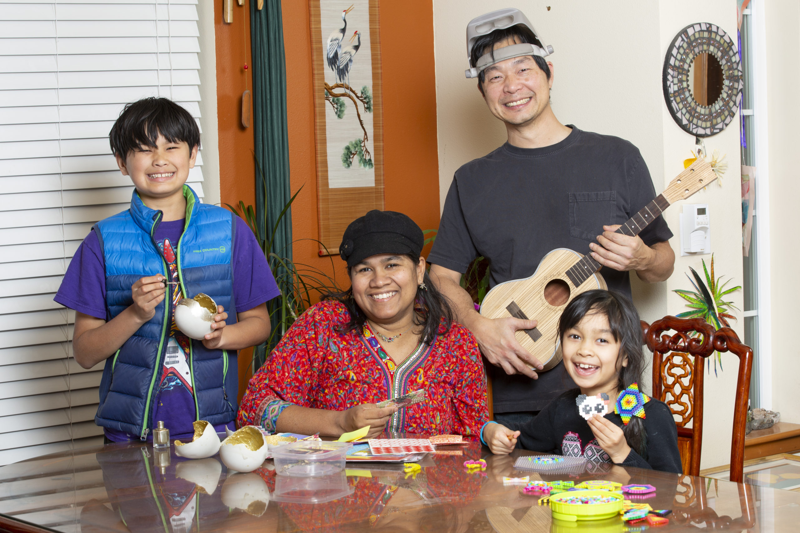 If you ever have the pleasure of meeting the Kuo family, you will likely be gifted a homemade creation. This musically talented Shoreline family of four comprises Elena, Charles, Sam, 13, and Evelyn, 8. When they’re not filling their home with sweet melodies, you can find them busy at work on any number of whimsical projects.