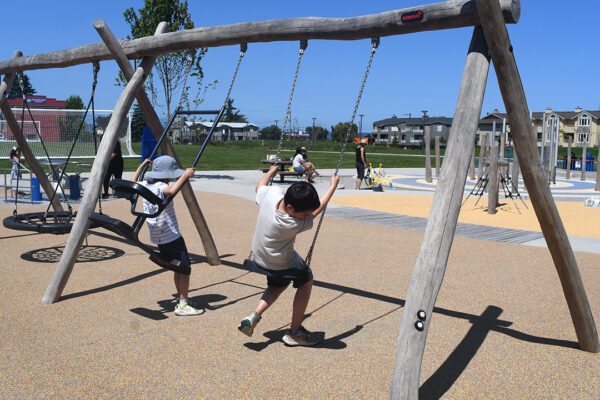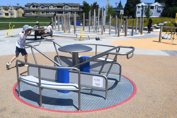 The city didn’t quite have enough money budgeted to make the playground inclusive, so the parks department reached out to the Rotary Club to fundraise for additional costs. Together, the Rotary Club and the City of Edmonds raised $500,000 to buy specialized equipment. Ground broke in August 2020, and the playground’s grand opening celebration was held in June.
