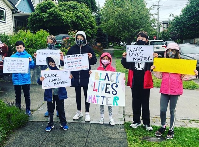 Tonight (June 3) at 5:30 PM Greenwood neighbors plan to hold another peaceful gathering at the intersection of Greenwood Ave and 85th St. Katelyn Morris invites families to join in support of Black Lives Matter and anti-racism, “Bring your kids, bring your signs, bring your hearts, bring your energy and please wear your masks.”