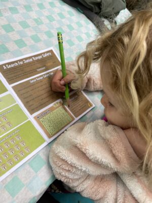 Once they have their booklet, kids can complete activities at their own pace. In Junior Ranger programs we’ve participated in, the booklets include activities such as word searches, bingo, scavenger hunts, coloring, matching, singing, and more.