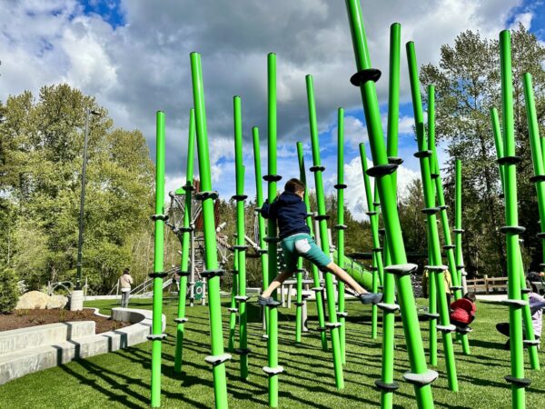 Pro Tip: Sometimes parking can be challenging here, so if the lot is full, another one of our favorite all-age climbing playgrounds is less than five minutes away at Grass Lawn Park in Redmond.