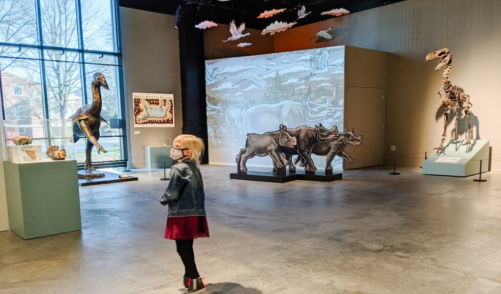 The exhibit includes an artistic depiction of the ill-fated diceratherium, as well as a video installation next to a herd of cutouts that invites socially-distant wandering. My daughter’s favorite part of the story? The entrance to the cave is through the Diceratherium’s rear end. She couldn’t wait to share that fascinating fact at the dinner table after our visit.