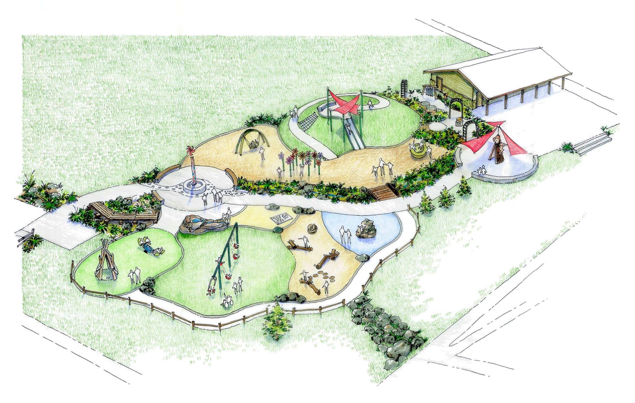 The playground will be housed in Bainbridge Island's Rotary Park and will include smooth surfaces for those who use mobility devices, clear slight lines, multi-sensory playtoys, circular seating for parents and caregivers, and adaptive play equipment.