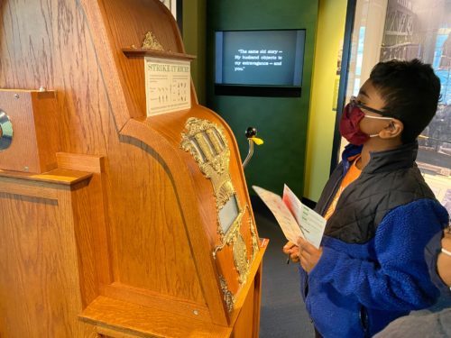 Turning cranks, pressing buttons and tapping on screens (all with our stylus), my kids loved the interactive portions of the museum. With every turn and tap, they learned a new fact. In the Gold Rush room, they pulled levers of a slot machine to learn about settlers who became rich.