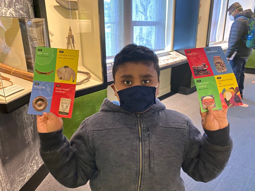 The scavenger hunt helped move us through each exhibit, keeping the tour exciting, especially for my 7-year-old. āOh, I found the jar of guitar picks!ā he said while exploring Seattleās music and pop culture rooms. To extend learning and critical thinking, each scavenger hunt card has questions on the back, to answer together at the museum or for later.