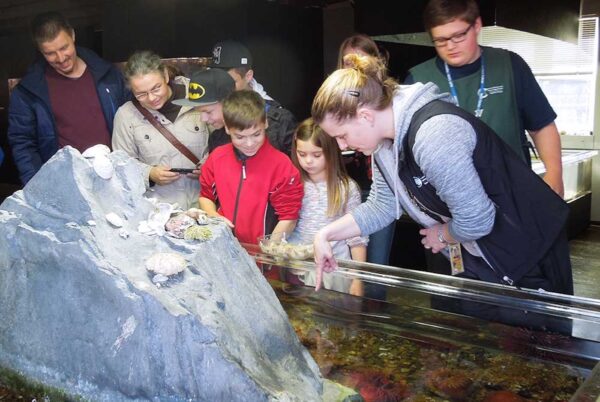 Gobies, greenlings, sculpins, gunnels, sea stars, crabs, and snails, too. You’ll find them at this marine biology center and aquarium, where a 38-foot gray whale skeleton greets you at the door. There are more than 250 native Puget Sound marine species in the Center’s tanks of marine life and hands-on exhibits.