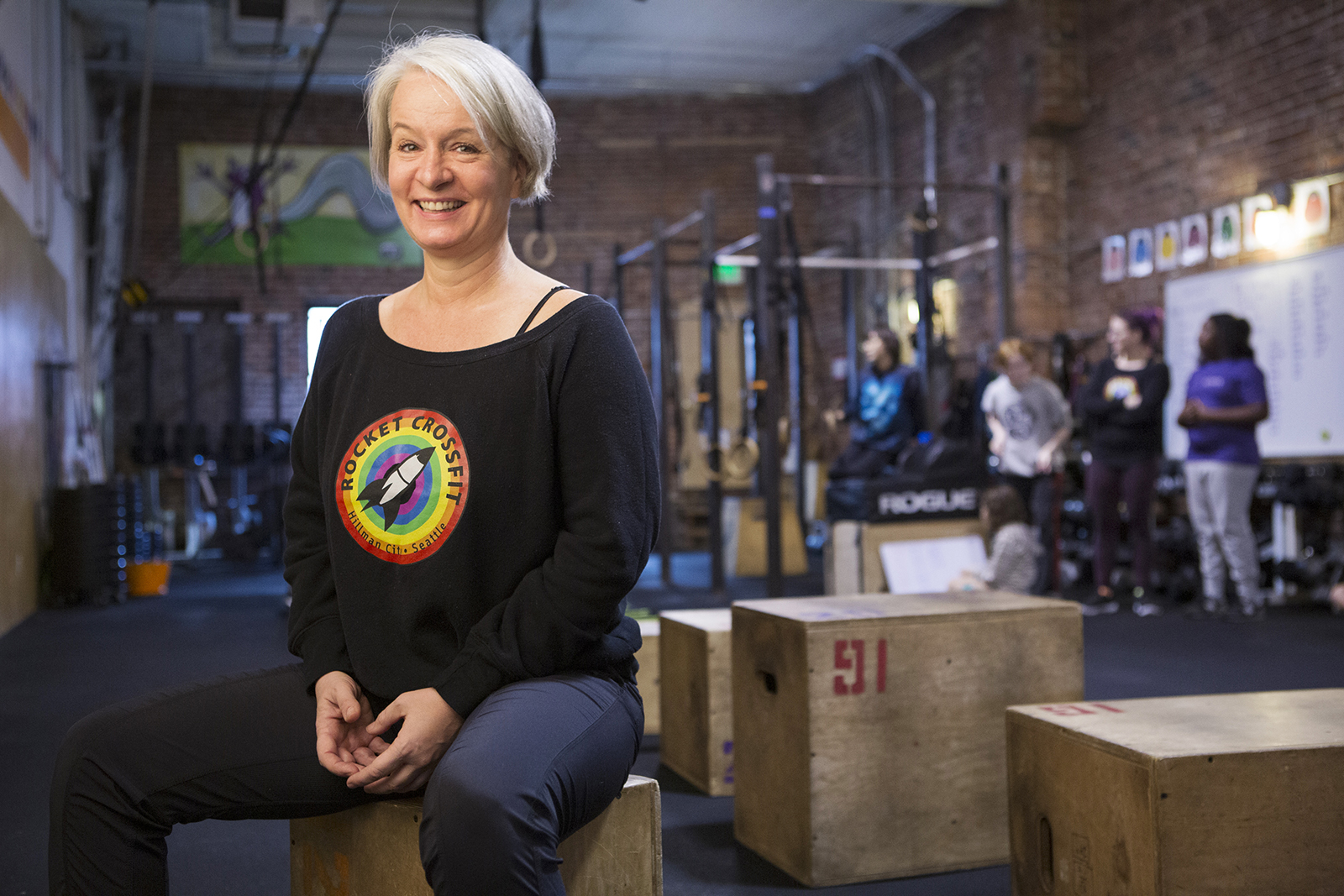 Alyssa Royse and her husband, Brady Collins, own Rocket CrossFit in South Seattle. Although she’s been coaching fitnessy things since the days of step aerobics and high-top Reeboks, Alyssa spends most of her time now consulting on the intersection of fitness and inclusivity. When she’s not doing that, she’s probably in the gym. She has a 21-year-old daughter who happens to be a competitive athlete; she settled on weightlifting at age 16, after hating pretty much all sports until then, and yes, they tried everything. You can often find all three of them in the gym together.